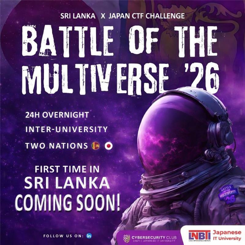 「Battle of the Multiverse '26」では、日本とスリランカの大学生・専門学校生・高等専門学校生が参加し、日本 vs スリランカのチーム形式でサイバーセキュリティの知識や技術を競い合います。